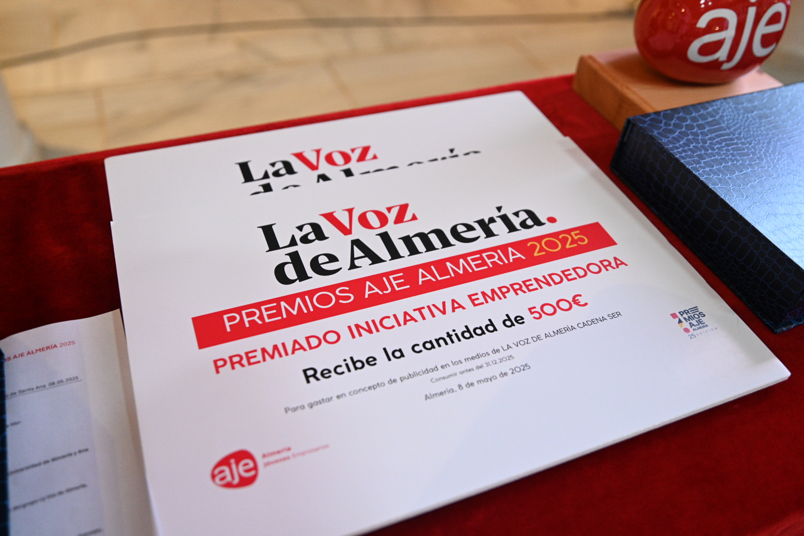 Ambos galardonados representarán a nuestra provincia en la fase andaluza de los Premios AJE, que se celebrará el próximo 23 de octubre en Jaén. Además, cada premiado recibió un cheque valorado en 500 € en publicidad gracias a la colaboración de La Voz de Almería y Cadena SER.