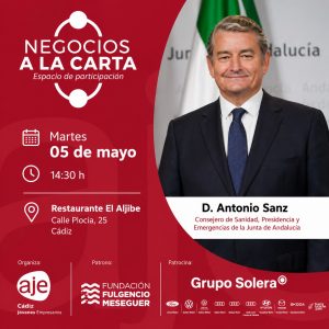 En esta ocasión contaremos con la presencia de Antonio Sanz, una de las figuras más relevantes del actual Gobierno andaluz, con quien podremos conversar de forma directa sobre actualidad económica, emprendimiento, empresas, inversiones y futuro empresarial de Andalucía y la provincia de Cádiz.