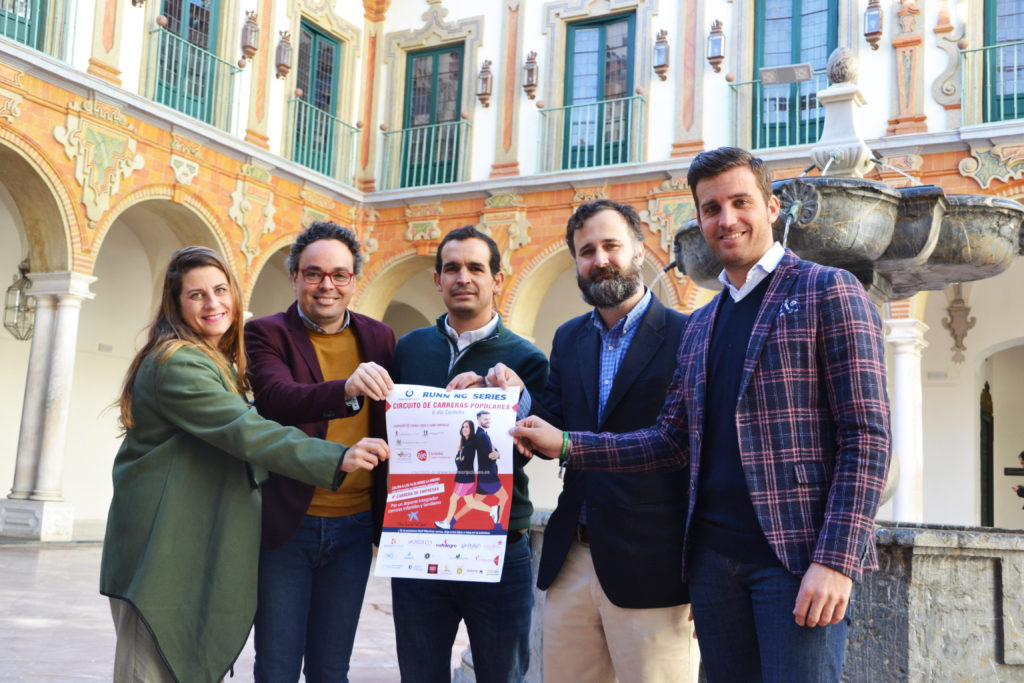 El presidente de Jóvenes Empresarios, Francisco Castejón, presenta la prueba junto a representantes de Diputación e IMD y la dirección técnica en el Palacio de la Merced
