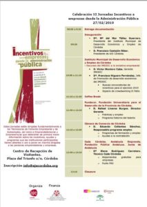 La Asociación de Jóvenes Empresarios de Córdoba junto al  IMDEEC dentro de su convocatoria de subvenciones a entidades sin ánimo de lucro 2018 organizamos las “Jornadas de Incentivos a Empresas desde la Administración Pública” para el próximo miércoles  día 27 de Febrero en el Salón de Actos del Centro de Recepción de visitantes  (Plaza del Triunfo, s/n).
