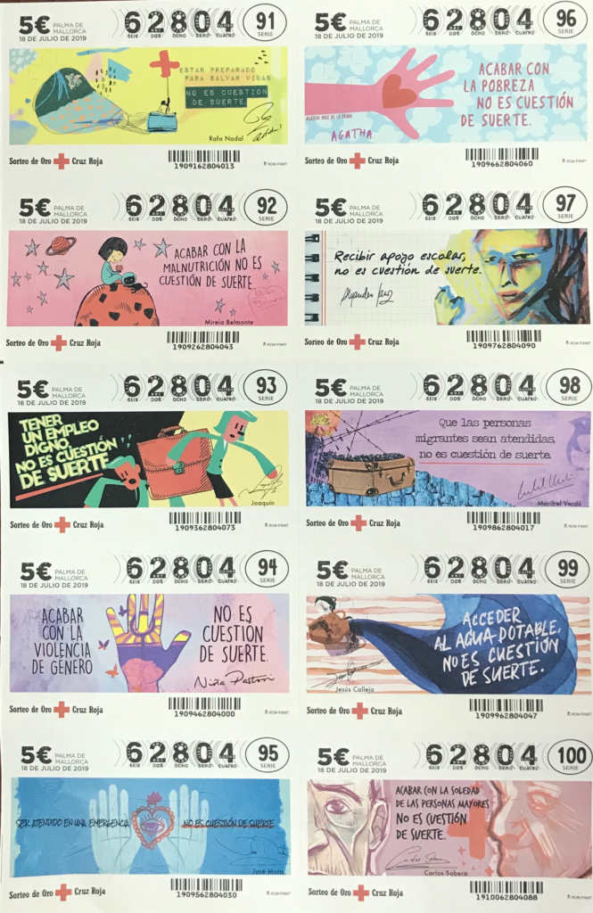 Mediante el Sorteo de oro de Cruz Roja, tu empresa puede hacer posible que un niño/a, meriende cada día, que unCruz a familia reciba un kit de higiene básico o que una persona mayor no se sienta sola en su día a día, así como a otras personas en situación vulnerable, colaborando con la venta de 10 boletos del sorteo del oro 2019. Cada boleto tiene un importe de 5€ y proporciona: