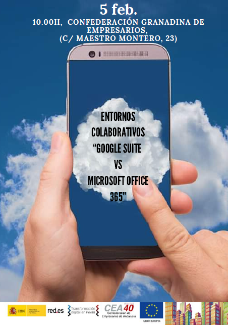 El próximo miércoles, 5 de febrero a las 10.00h, la Confederación Granadina de Empresarios (C/ Maestro Montero, 23), desarrollará una jornada práctica sobre entornos colaborativos “Google Suite versus Microsoft Office 365”, en colaboración con la Oficina de Transformación Digital de la CEA, enfocada al fomento del uso de tecnologías y modelos de comunicación digitales que permitan diseñar una organización más dinámica y cercana.