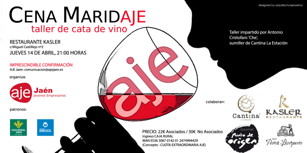 El próximo jueves 14 de abril la Asociación de Jóvenes Empresarios celebra una cena maridAJE en la que degustaremos productos de empresas asociadas (restaurante Kasler, Gourmet Punto de Origen, Picum especias Gourmet).