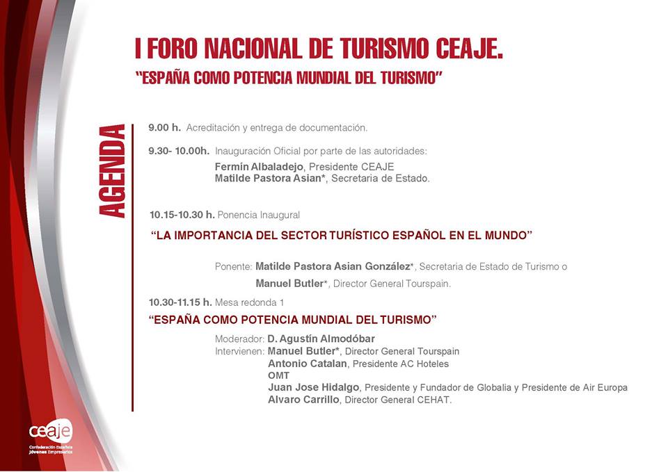 El próximo 23 de abril se celebra el I Foro Nacional de Turismo: “España como potencia mundial del turismo” , organizado por CEAJE.