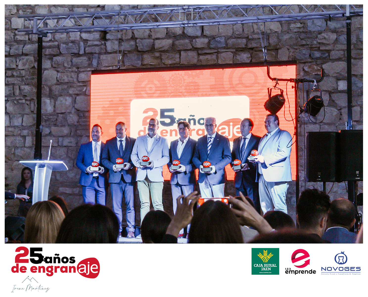 AJE Jaén ha celebrado el 25 aniversario de su fundación en un evento en el que ha congregado a 150 personas en la terraza exterior del Teatro Infanta Leonor de Jaén. Bajo el lema “25 años de engranAJE” la asociación ha querido reconocer el esfuerzo de todos aquellos que han formado parte de la asociación, como piezas fundamentales de su engranAJE.