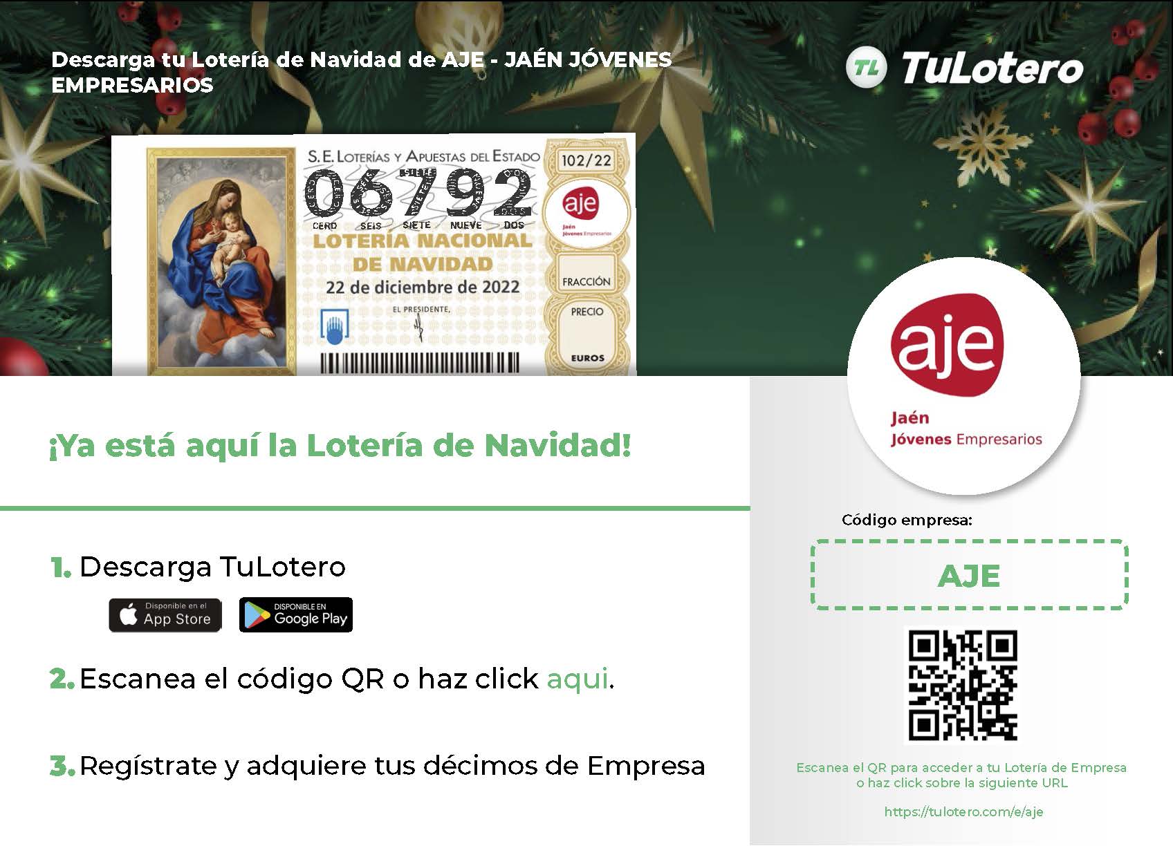 ¡¡¡Consigue tu lotería de navidad #AJE!!! Número para asociados🍀 06792🍀
