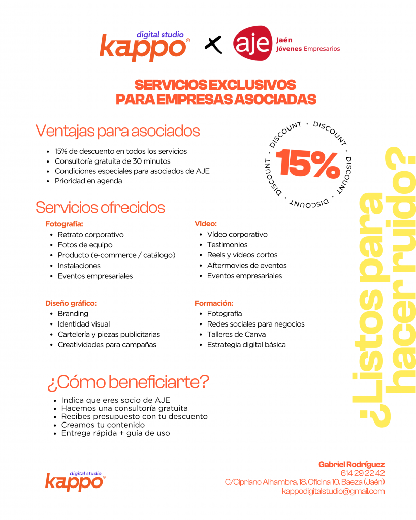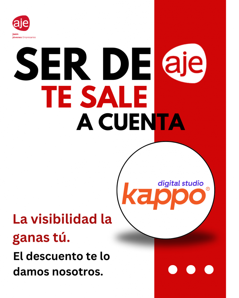 En AJE Jaén seguimos sumando alianzas que aporten valor real a tu empresa y potencien tu presencia en el entorno digital. Por eso con Kappo Digital Studio, todas las empresas asociadas podrán acceder a beneficios exclusivos: