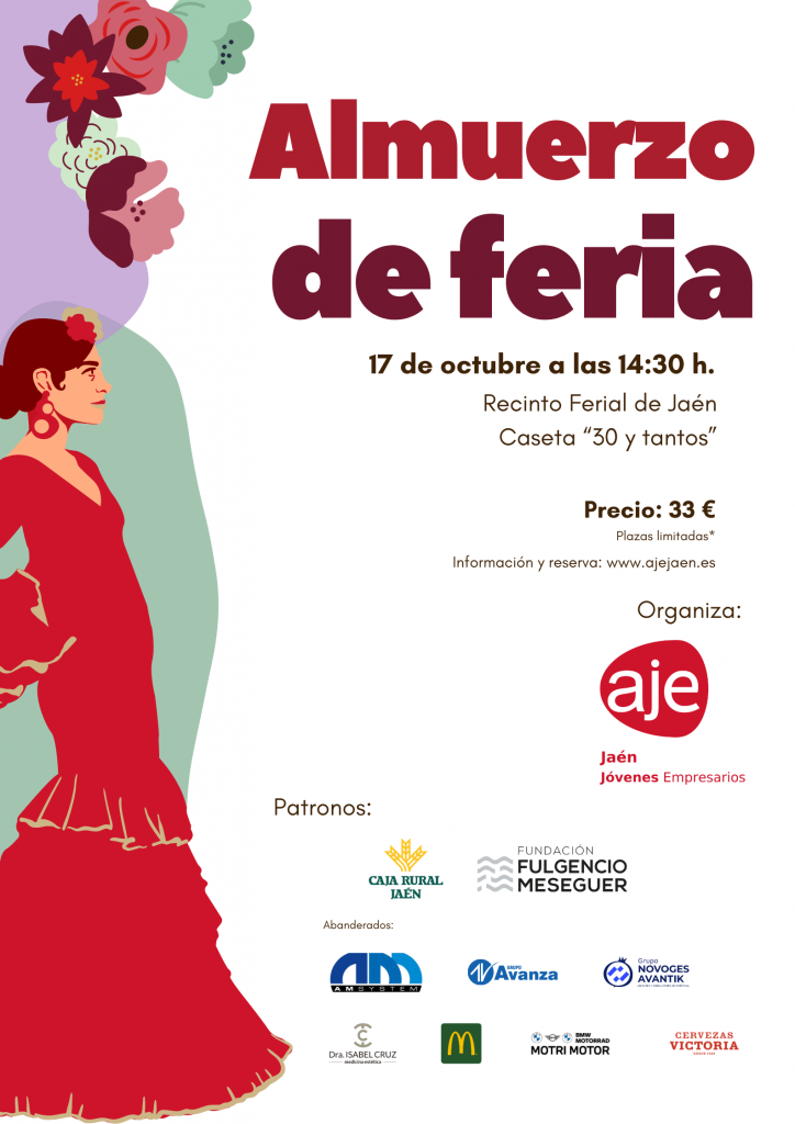 El próximo 17 de octubre a las 14:30 h nos vemos en la Caseta 30 y Tantos para disfrutar de nuestro Almuerzo de Feria AJE 2025.