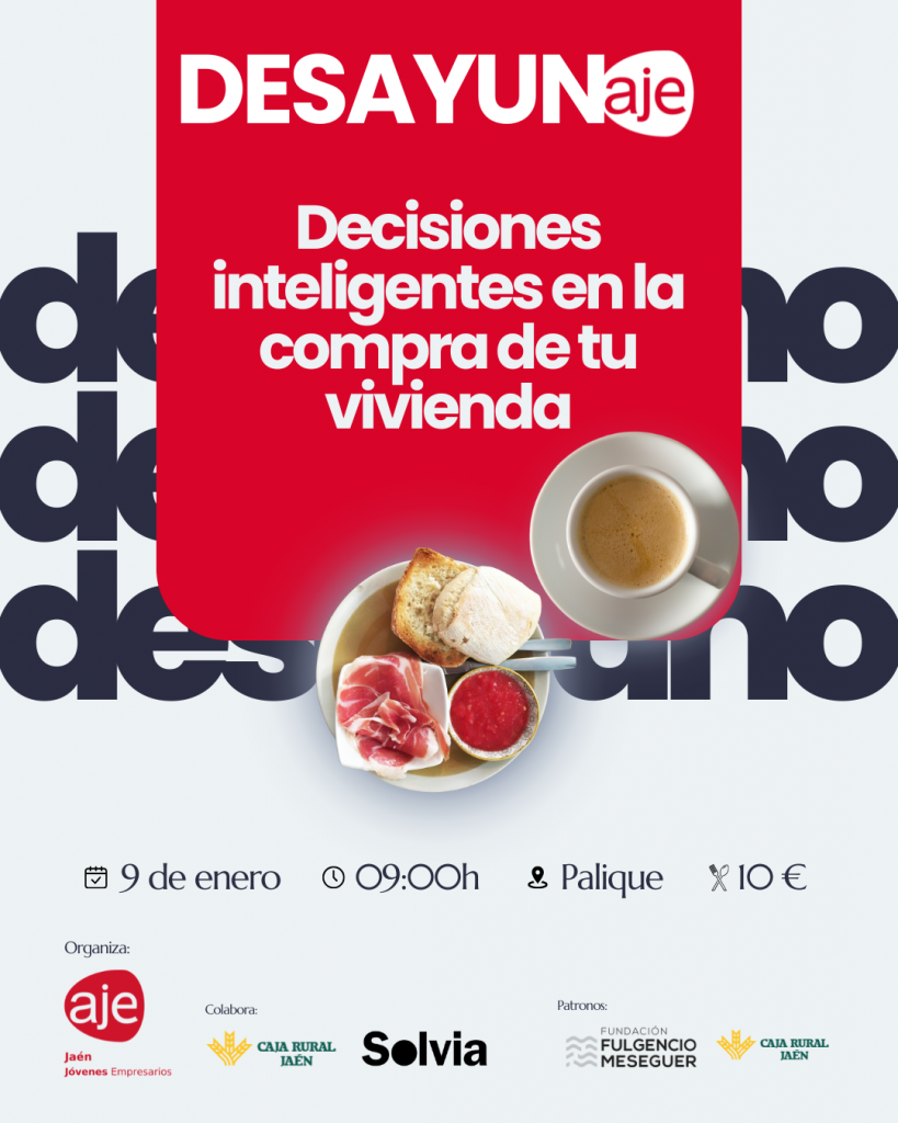 El próximo 9 de enero, de 09:00 h a 10:30 h, contaremos con la participación de Solvia Inmobiliaria, que nos ayudará a entender el mercado actual, identificar oportunidades y evitar errores frecuentes en el proceso de compra, y con Caja Rural de Jaén, que abordará la cuestión de la financiación y las mejores opciones para afrontar la compra de una vivienda con criterio y seguridad.