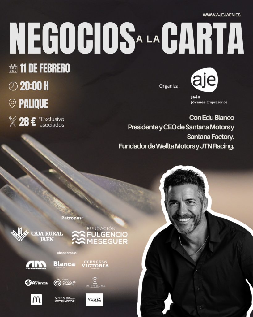En AJE Jaén lo hacemos posible con Negocios a la Carta, un formato exclusivo donde un grupo reducido de jóvenes empresarios y empresarias tienen la oportunidad de debatir, preguntar y generar conexiones de valor en un ambiente cercano y distendido.