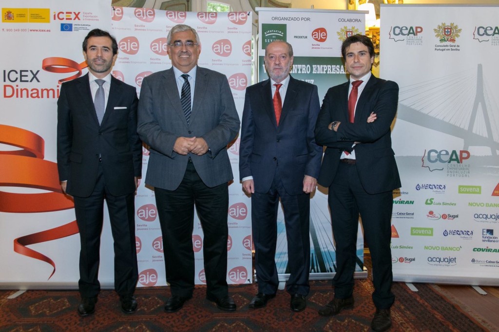 El presidente de Aje Sevilla, Jorge Robles del Salto, junto al presidente de la Diputación de Sevilla, Fernando Rodríguez Villalobos, y el consejero de Economía y Conocimiento de la Junta de Andalucía, Antonio Ramírez de Arellano, inauguraron el V Encuentro Empresarial Luso Andaluz, organizado por la institución provincial, a través de Prodetur, y la Asociación de Jóvenes Empresarios de Sevilla (AJE-Sevilla), con la colaboración del Consulado de Portugal; la Confederación Española de Jóvenes Empresarios (CEAJE); la Agencia Andaluza de Promoción Exterior (EXTENDA); ICEX España Exportación e Inversiones. Delegación provincial de Sevilla (ICEX Sevilla); la Agência para o Investimento e Comercio Externo de Portugal (AICEP Global); la Asociación Cuerpo Consular de Sevilla; y el Consejo Empresarial Andalucía- Portugal (CEAP).