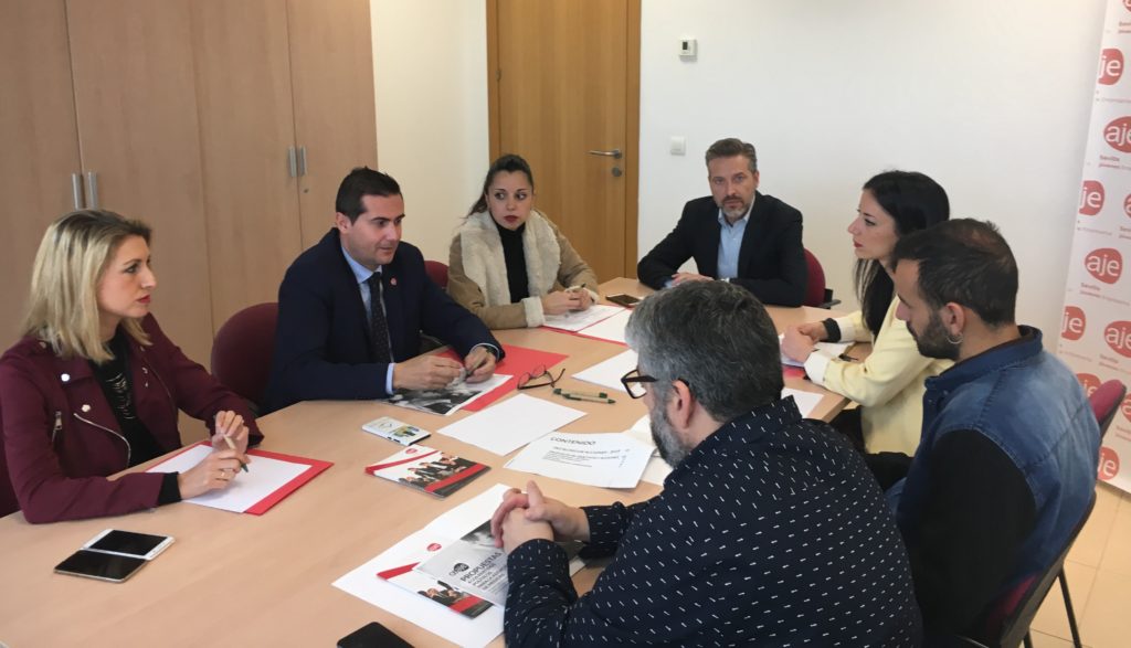 Sevilla, 25 de abril.- Enmarcada en la ronda de contactos con las formaciones políticas que se presentan a las Elecciones Generales del próximo 28 de abril, la dirección de AJE Sevilla se ha reunido con Miguel Ángel Bustamante, Isabel Franco y José Ruiz Hernán, candidatos de Unidas Podemos por Sevilla para hacerles llegar las necesidades del colectivo de Jóvenes Empresarios de la provincia.