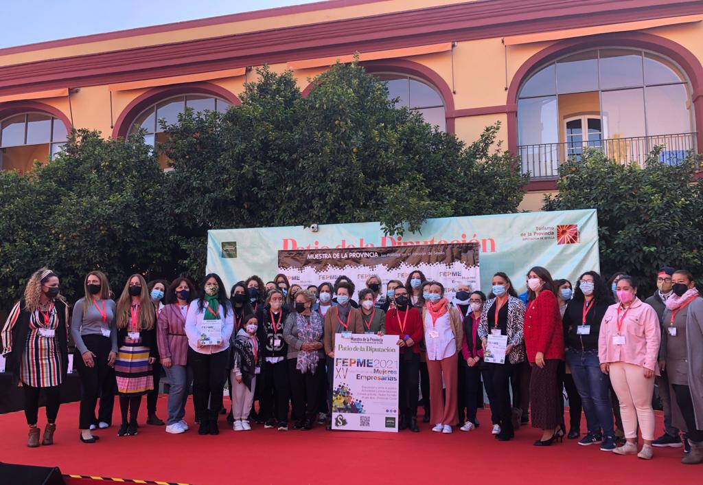 En en día de ayer, nuestra vicepresidenta, Aida Escudero, asistió a la inauguración de la XV Feria Provincial de Mujeres Empresarias 2021. Hasta el domingo 14 podremos disfrutar y conocer en el Patio de la Diputación treinta y siete expositoras diferentes de unos treinta municipios diferentes de Sevilla. Podremos encontrar desde cosmética, robótica, agroindustria, complementos y moda. La tarde se acompañará con actividades empresariales de presentación de los diferentes productos y servicios dirigidos a todo tipo de públicos.
