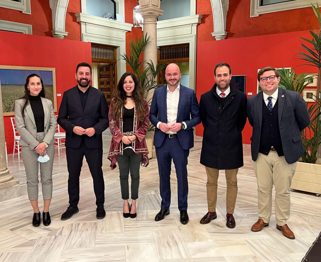 El Presidente, Melesio Peña, la Vicepresidenta de RRII de AJE Andalucía y Presidenta de AJE, Candela Luque, así como la Vicepresidenta, Aída Escudero, el Tesorero, Alberto Muñoz y el Gerente de AJE Sevilla, Agustín Morilla, asisten al Encuentro Informativo de Andalucía – Europa Press con el presidente de CEAJE Jóvenes Empresarios, Fermín Albaladejo.